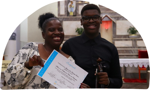 “Meu filho ingressou na Fundação aos 8 anos. Hoje, Gabriel integra a Orquestra Amare e, graças à formação que recebeu, é também bolsista em uma escola particular e atua na Orquestra Sinfônica Cachoeira Grande e na Orquestra do Tribunal de Justiça de MG, em que foi selecionado para uma das cinco vagas disponíveis. Posso afirmar que a Fundação transforma vidas.”
